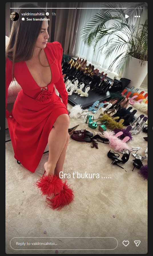 Dizajneri Valdrin Sahiti publikoi një fotografi ku shihet teksa “bomba” provon veshje dhe taka, shkruan Indeksonline.