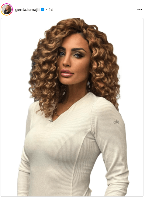 Në fotografinë e publikuar në profilin e saj zyrtar në Instagram, Genta shfaqet me një pamje të fuqishme dhe elegante, e veshur me një bluzë të bardhë sportive nga brendi “alo”, që thekson linjat e saj trupore dhe stilin minimalist por shumë të kuruar.