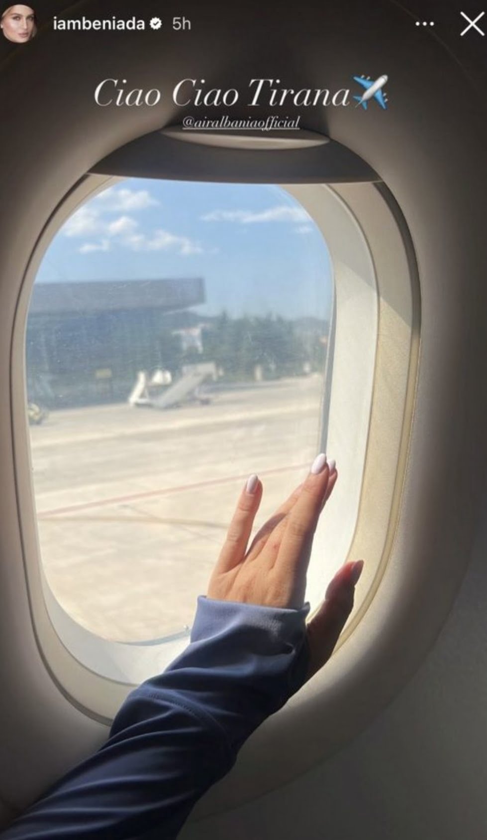 Ajo ka postuar foto teksa po niset për udhëtim dhe nga avioni shkruan “ciao ciao Tirana”. Ajo nuk ka treguar nëse në këtë udhëtim është vetëm apo e shoqëruar.