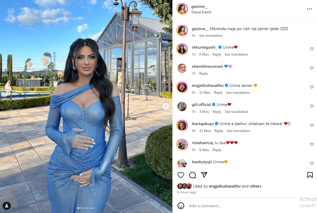 Postimi i Gëzimjes në Instagram është bërë viral në pak minuta. Ajo ka shpërndarë një fotografi elegante ku mban barkun e rrumbullakosur me duar dhe shpreh ndjenjat e saj me shumë emocion. “Nuk ka ndjenjë më të fuqishme se ajo kur kupton që brenda teje po rritet një jetë. Brenda meje po rreh një zemër tjetër dhe kjo më bën më të plotë, më të përmbushur.” – ka shkruar ajo në përshkrimin e postimit.