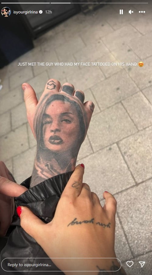 Një fans i saj e ka bërë fytyrën e këngëtares tatuazh në dorën e tij.