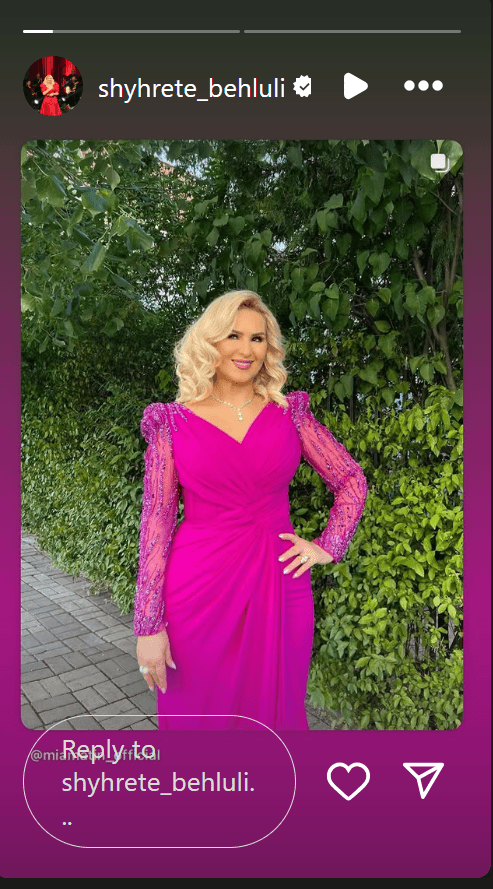 Këngëtarja e dashur e muzikës popullore, Shyhrete Behluli, ka rrëmbyer vëmendjen e ndjekësve me pamjen e saj mahnitëse në një paraqitje të fundit në rrjete sociale. E veshur me një fustan ngjyrë vjollce të ndezur dhe me detaje elegante në mëngë, ajo u shfaq më elegante se kurrë, duke dëshmuar edhe njëherë se mosha është thjesht një numër.