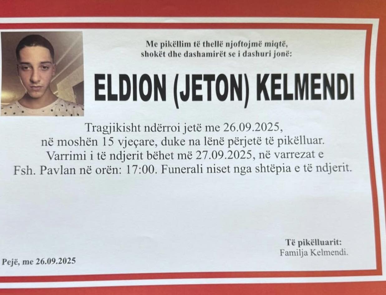 Përmes një postimi në rrjetet sociale, është bërë me dije se ceremonia e varrimit do të mbahet sot, më 27 shtator, në ora 17:00, në varrezat e fshatit Pavlan të Pejës.