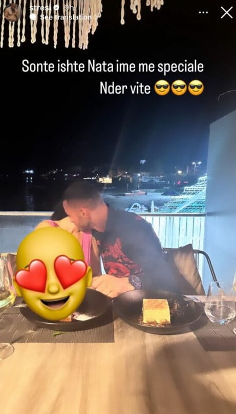 Në foton e postuar Stresi shihet teksa puthet me vajzën misterioze dhe krah fotos shkruan: Sonte ishte nata ime më speciale, ndër vite.