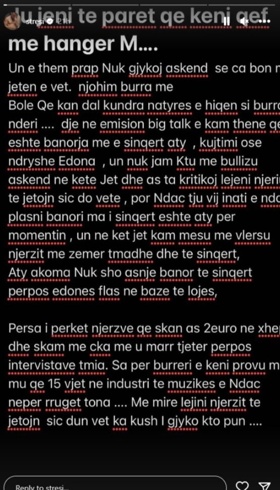 Një mendim lidhur me të e ka dhënë ish fituesi i edicionit të parë, Stresi.