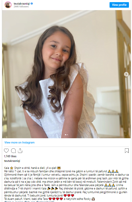 Vajza e Teuta Krasniqit mbushë shtatë vjeç, Kaia qenka bërë tamam zonjushë.