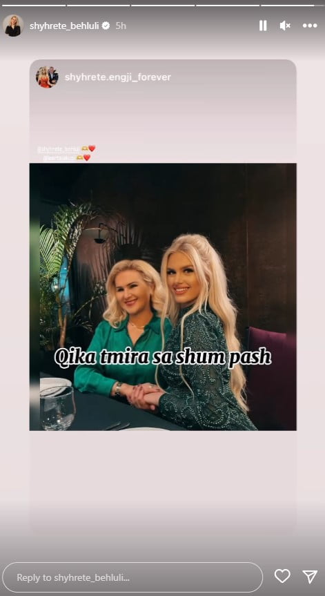 Postimin e fundit, këngëtarja e njohur ia ka dedikuar rejës së saj, Learta Jakupit.